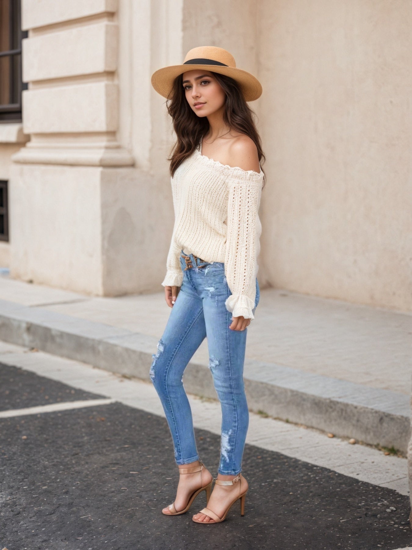 Ladies' Stretch Slim Fit Jeans - High Stretch Distressed Style With Distressed Design And Pocket Waist Denim Pants, Durable And Comfortable Soft Material, Casual And Elegant, Suitable For All Seasons