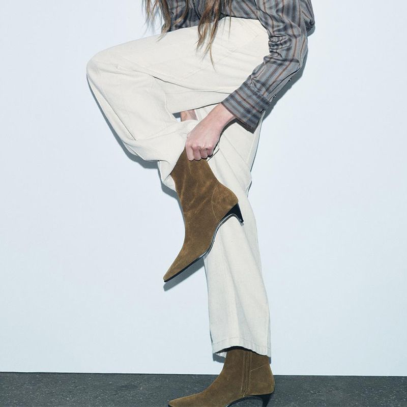 Square Toe High Heel Middle Boots Side Zipper Retro Kitten Heel Booties